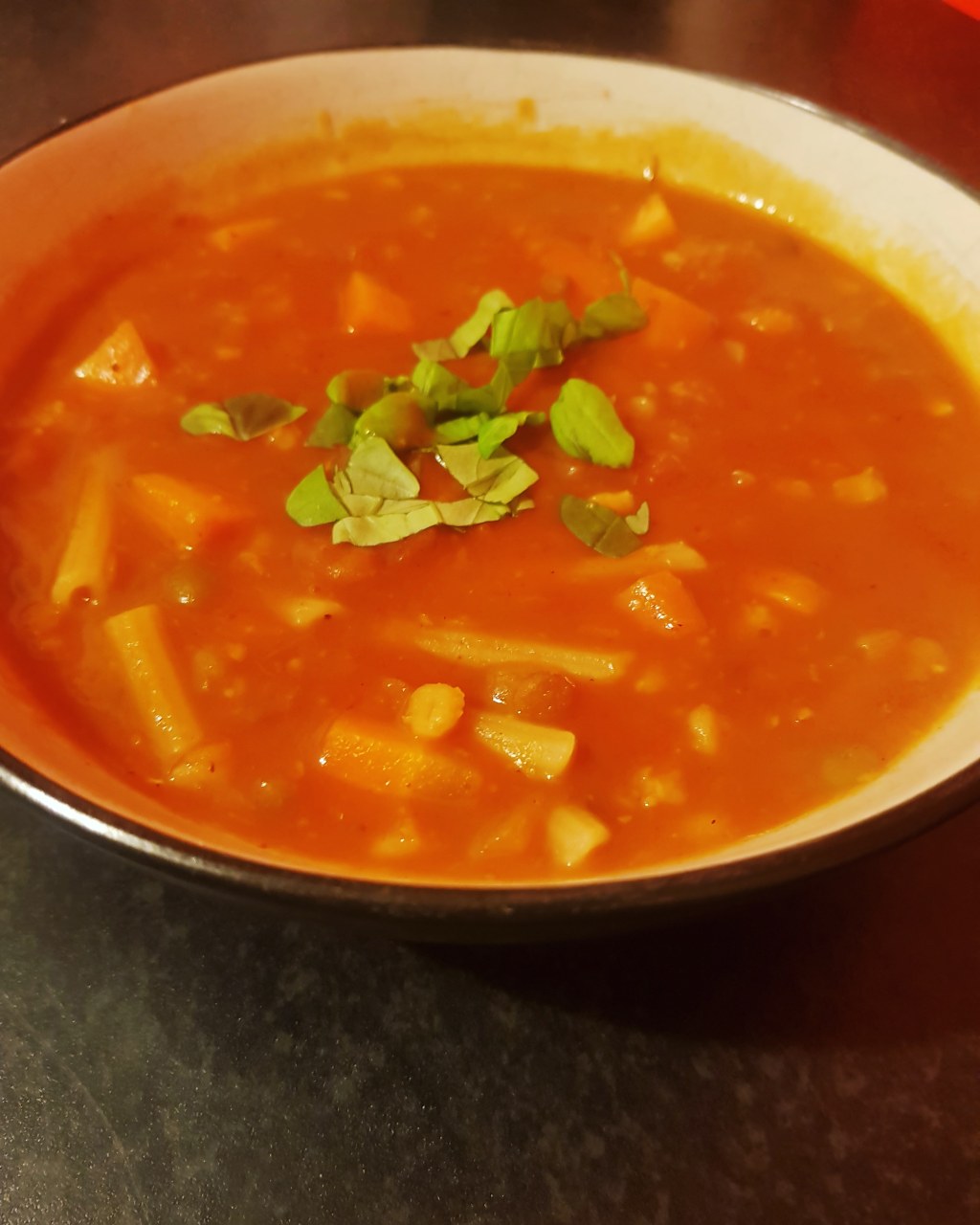 This recipe was inspired by a jar of passata I had in the pantry and my husband’s love of tomato soup. A month or so ago, he was sick and only wanted tomato soup. I had a think and just grabbed the ingredients I thought would fill him up, provide essential nutrients and taste great.