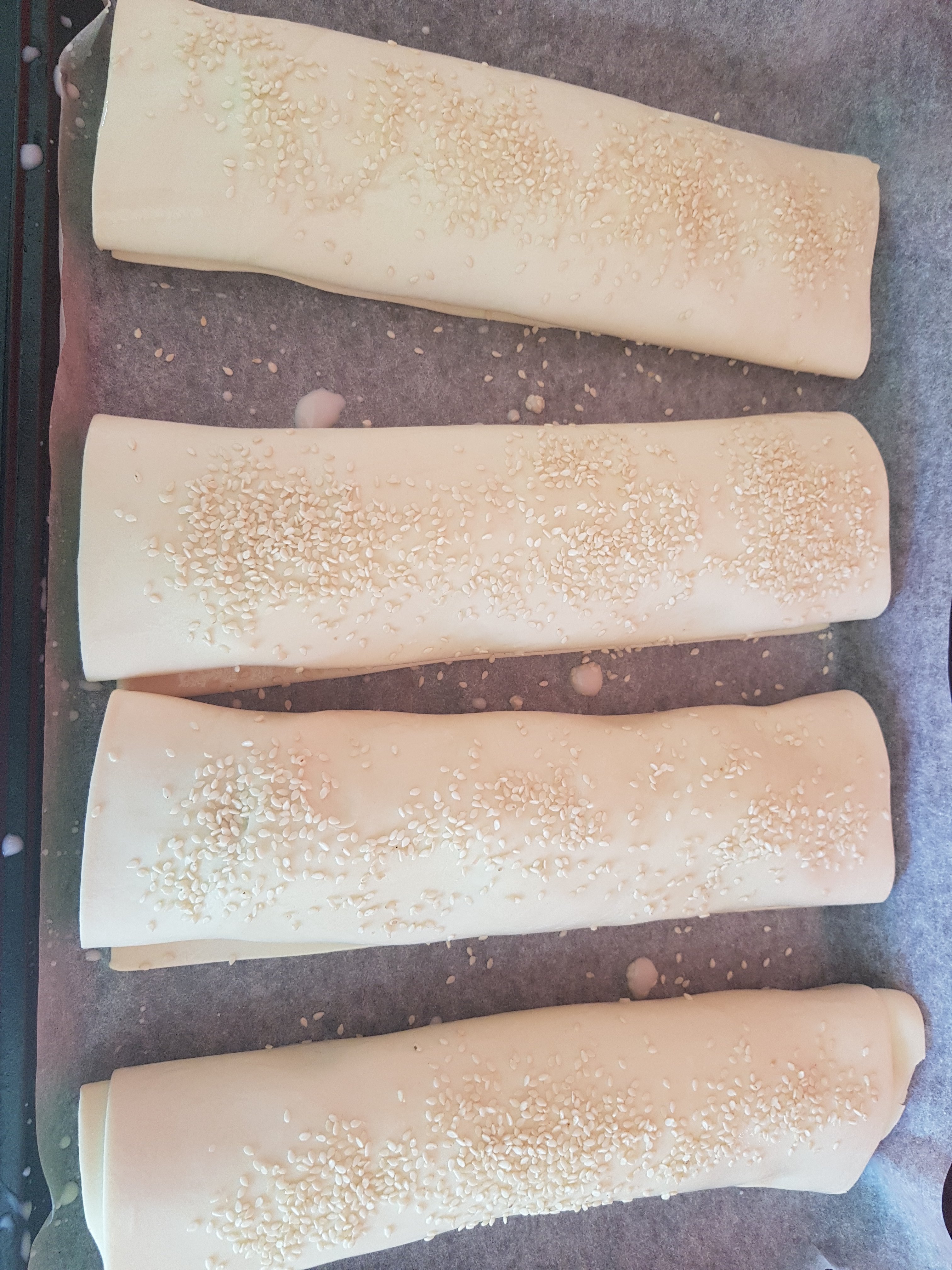 Brush each roll with plant milk and sprinkle with sesame seeds