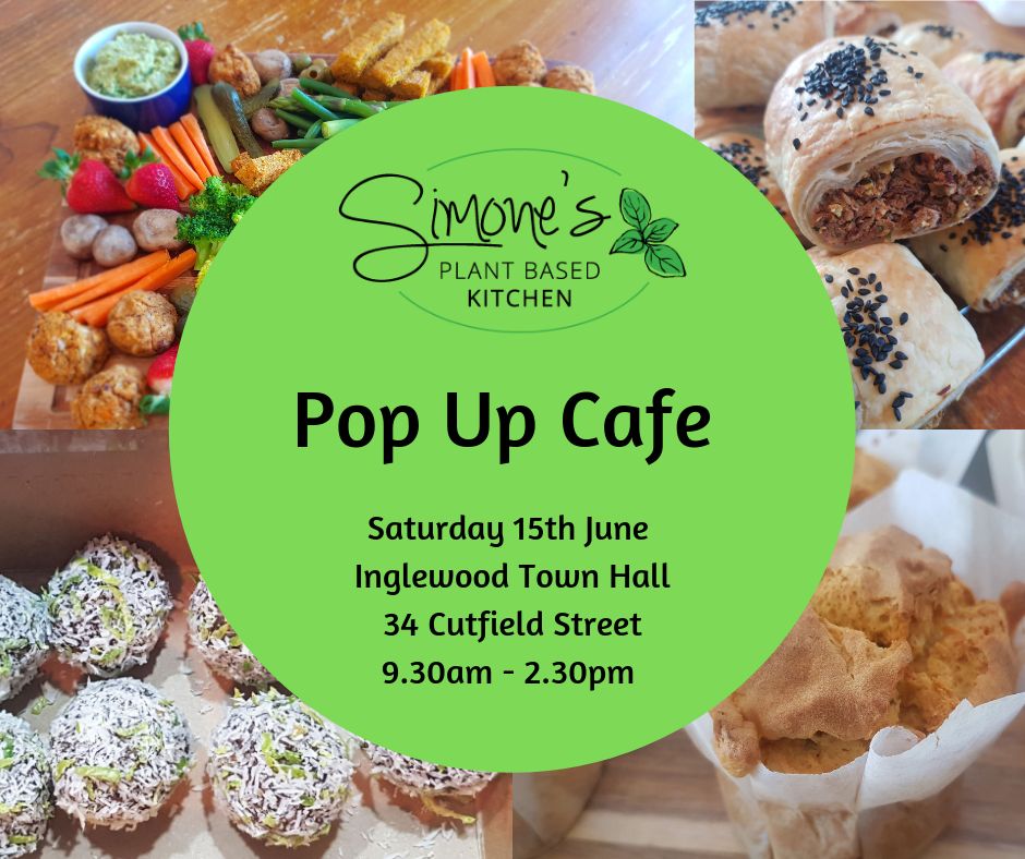Simone’s Plant Based Kitchen is popping up cafe style at the Wellness Fair in Inglewood on 15th June. It’ll be in the Town Hall, 34 Cutfield Street.